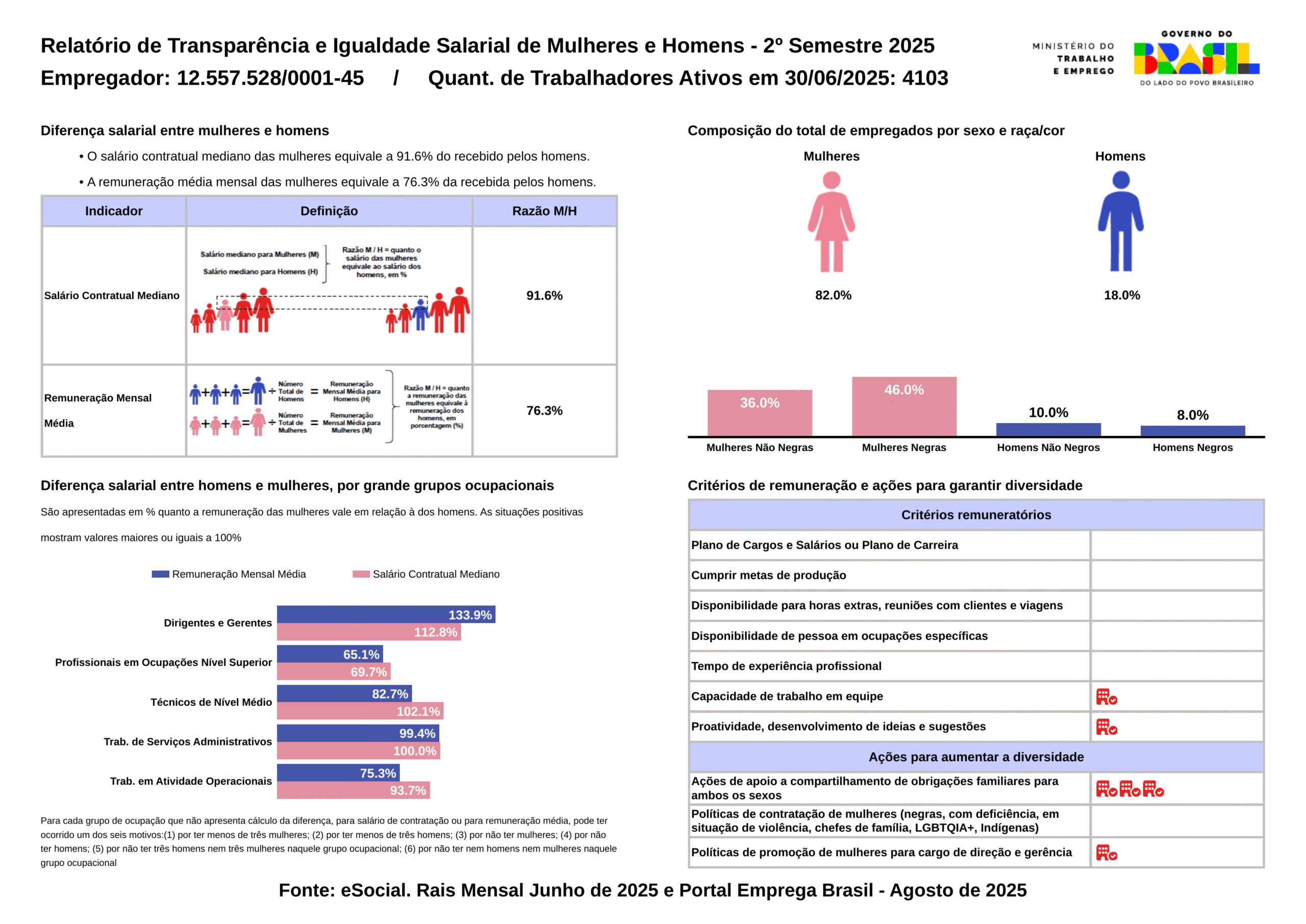 O relatório tem o objetivo de garantir maior transparência e equidade salarial, além de informar a sociedade e os colaboradores sobre as práticas adotadas internamente.