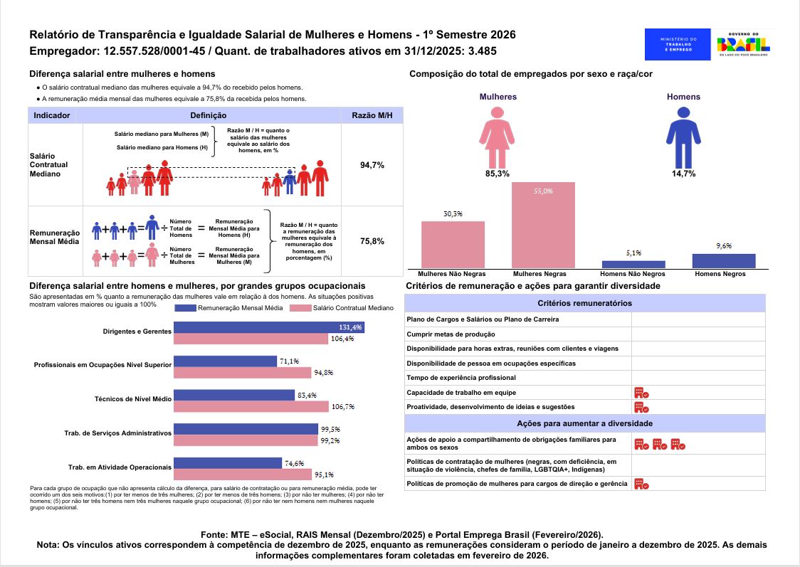 O relatório está disponível para consulta em nossos meios de comunicação oficiais, incluindo o site institucional e canais de comunicação internos. Reforçamos que todas as informações seguem as diretrizes do MTE e estão atualizadas para o ano de 2026.